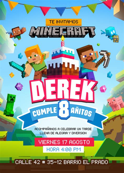 Kit imprimible candy bar î minecraftî para eventos. Gracias por visitar el blog tarjetas relacionadas 2019. 2 invitaciones en hoja tamaño cartainvitacion tamaño. Explora cientos de fondos de invitaciones que puedes editar, descargar, imprimir o enviar online donde quieras. El tema fiesta de minecraft es una de las ideas para fiestas de cumpleaños que se pueden usar para cumpleaños infantiles,.